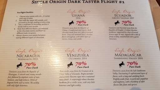 Read moreAmazing chocolate.....incredibly rude staff. My family stopped in today for a little treat while we were in the area. First of all there are no signs indicating where to line up for the flights vs general ordering. Naturely, we made our way to the register in the very small and busy space, since we noted the staff was busy with other patrons and we assumed that would be the place to wait patiently, out of the way of the door. However, we were immediately chided like disobedient children for making this assumption. The older gentleman who came up to help us then proceeded to give the spiel before commencing the tasting menu. My mother asked him a question to which, he curtly asked if he "should continue my description". Then, I was very full from lunch and not wanting to consume an excessive amount of chocolate so I asked to split the tasting plate with my husband. To which the same gentleman became irritated and stated they were too small of pieces to share....which is not true by the way, splitting would have been sufficient...the real reason is they charge per person not per flight. Finally, we went back up to the bar to order a 4 piece of truffles to take home. While they were being boxed my husband made his way to the cash register, having learned our lesson. Once they were boxed, I was trying to explain to the young man that my husband was at the register waiting to pay to which he demanded that I need to go to the register on the other side of the room to pay for them. I finally just said ok. Overall the experience was irritating and we left feeling insulted. If the flow is going to be that big of an issue for the staff then maybe they should consider redesigning or placing signs to...
