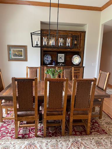 When we went looking for a new furniture. I had fallen in love with a dining room table at RIIS. When I brought my husband to look at it, he completely agreed, and also added a few more things (such as coffee and end tables). After delivery, we had planned to add custom cabinets in a large niche we had in the dining room. But we loved the barnwood look. We decided to have a custom hutch made for this niche, and the designers suggested a larger, higher version. Honestly, I was very nervous as to what it might like, but it is beyond stunning. A perfect "statement piece" that ties our home together. We couldn't be happier with all of our RIIS products, the excellent customer concern and satisfaction that they have shown every step of the way! THANK YOU to...
