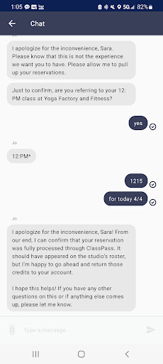 REPLY TO UPDATED REPLY FROM OWNER - Not sure if you are illiterate but my screen shot shows Class Pass saying "I can confirm that your reservation was fully processed through Class Pass. It should have appeared on the studio's roster..." That obviously means I contacted them regarding this, AFTER the incident. Not sure how in the world you got from the screen shot that I canceled the class through Class Pass before I arrived for class.