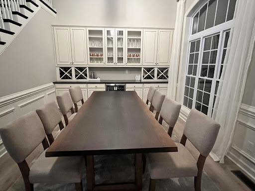 For time reasons, our builder was unable to get us the builtin cabinet upgrade in our new home. The cabinet maker referred us to Wood Restorations, where we got in touch with John, the owner. We had a really positive experience with him. John is friendly, courteous, and has a great deal of experience. He was quite familiar with what we were looking for and was able to give us a quote in a timely fashion. We ended up paying about what the upgrade would have cost had the builder been able to take care of it. John and his team also crafted a custom table top to match our cabinets. Due to the COVID pandemic there were supply issues, but once the cabinets arrived, installation was timely. We really love our new builtins! They really tie the room together.