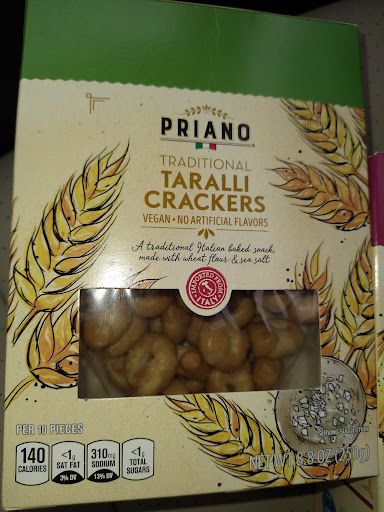 Besides the above observation, you can get really nice fresh produce for the most part, and nice surprise items in their "Aldi Finds" sections...such as these yummy crackers for some soup, or like I did today; a snack on-the-go, because it is difficult to find a plant-based cracker that is reasonably priced, not just five crackers in the box (ok, I'm exaggerating a bit) and doesn't have corn syrup, high fructose corn syrup, canola oil, maltodextrin, and other undesirable ingredients in it. (See images below)