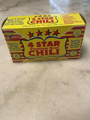 I have such fond memories of my dad buying up Famous or 4 Star Chili when I was a child. Sooooo good! It's fantastic on hot dogs, fries, burgers, or just the classic bowl with crackers. I live in the same town as the company, and was excited to see that stores were carrying this product again. AT the moment, I cannot taste or smell because of recent radiation treatments. I am literally salivating, ready to taste a piece of my childhood. Kudos, Famous Chili for keeping a Fort Smith tradition alive for all of...