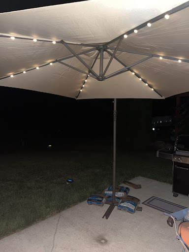 So my wife went home, took down the umbrella, loaded our 1 year old son in the car and drove to At Home. She returned the entire order of $140 and got a refund. She then drove down the street and found that Menards had a 10’ articulating umbrella with built in solar lights for $100.