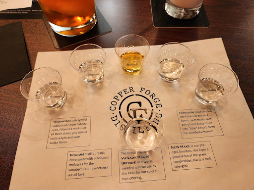 Read moreCopper Forge was a hidden gem of Fort Wayne. It’s marked outside, but it’s not too clear, and the bar is hidden behind a barrel storage room. It’s still a nice space, and the staff was very friendly. They have a decent number of their own spirits and the drink menu is delightful. I tried their schnapps flight and a drink called a chiliguarro. The schnapps were sweet but delicious, and I can’t recommend the peach schnapps enough. The chiliguarro was great and had a vegetal note plus spice that made it very interesting. I would definitely suggest Copper Forge if you’re looking for a local...