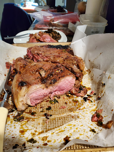 We got a mix of meats: ribeye, brisket, chicken, sausage, pork. They also have frozen veggies and an assortment of rubs and spices.