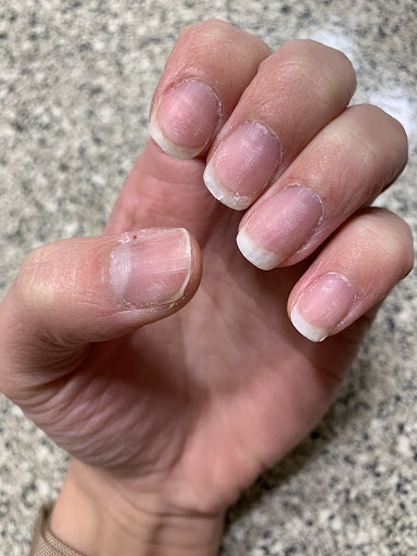 I then returned to the store and the SAME NAIL TECHNICIAN removed the gel from my nails. She was extremely rough while filing off the gel (which should've been soaked off) that she ended up filing off bits of my actual nail AND, what felt like was deliberate, my skin. the skin around my left ring finger began to bleed. The rest of the gel was then left to soak in a cotton ball and aluminum foil and then promptly scrubbed off with a metal tool (which ended up splitting my nail).
