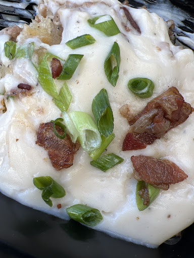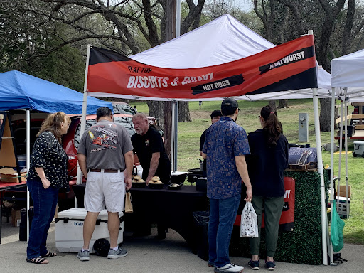 I tried Flat Top Biscuits and Gravy for the first time today at the Keller Farmers Market. I had the jalapeño cheddar biscuit with sausage gravy, chives and fresh sliced jalapeños😋🙌🏻👍🏻 The biscuit was made up of fluffy layers and golden brown on top and bottom. GREATNESS!!! They grill the biscuit and ladle it with cream sausage gravy and top with chives and fresh jalapeño slices. It was so great I will definitely come back for this and to try their other spins on biscuits. Their biscuit flavors are Herb & Cheddar, Sourdough and Jalapeño & Cheddar. They also work in waffles, monkey bread, bratwurst...