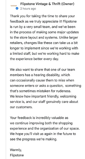 Read moreUpdated review: A business should never bring up an employee’s medical or disability status in a public response, especially when it wasn’t relevant to the original complaint.