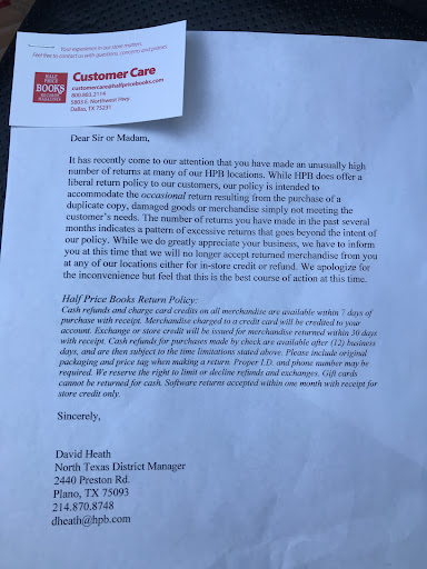 Overall, Half Price Books is a solid place to buy or sell lightly used or new books. Customer service is everything I could ask for. Only reason why I am not giving 5 stars is because most of their regular priced items are higher than online...