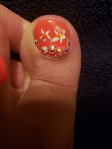 Read moreTerrible experience. By far the worst pedicure I've had in awhile. Toes were catching on the sheets I had to get up and file the corners and trim where she cut into the corners too deep and couldn't pull it without pulling skin. Pretty sure I'll have ingrown toenails soon. I was so ready to leave and so irritated. I asked for a simple dip, showed him the picture. Not sure if it was because he was too busy talking to his "niece" that he missed the pattern even after I asked about it. Instead of fixing my toes he put rhinestone to cover it up and told me I need my toenails buffed even. Not a problem I've ever had before. I have dip powder on my fingers, he brushed tons of oil on and then told me to rub it to get the powder off. Really? And that didnt work. I have polish on the skin around my toes. Just NO. And the rhinestones he put on to cover the mistake started popping off. And when I say I dont want a massage I mean I dont want a massage, dont start touching me to try to make up for things. That does not make up for the messed up paint on my toes or wasted$. Now I have to go get...