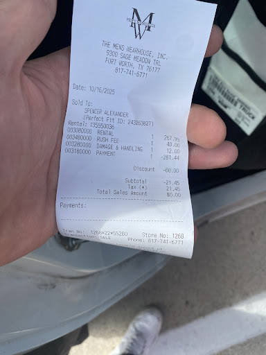 You guys had one job and couldnât even fulfill it. As if wedding planning isnât stressful enough, this experience only added more stress to my plate. I am not looking forward to coming back to pick up my suit and having to wait another hour for someone to see me after I write my name on their lame sign in sheet. Itâs 2025 guys! Give us a mobile waitlist option at least! Super lame experience and Iâm glad I didnât have the rest of my groomsmen get their suits here because then I wouldâve been worried about them getting the right stuff. Maybe Menâs Wearhouse is okay, I went to another location and had a much better experience, but this location...