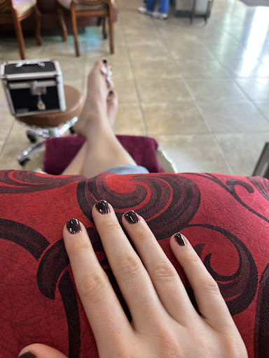 The parking lot is large, so parking is never an issue here. The building is in the center of a strip mall and is on the newer side. The inside is very tastefully decorated - no Buddha on the front desk, no stinky incense and no overwhelming chemical smells inside. The area for fingernail polish is well organized and the selection of colors to choose from is awesome. Several TVās are located on either wall across from the massage chairs if youād like to watch a show while your nails are being done. All of the roller chairs and counters at the nail stations are organized and clean.