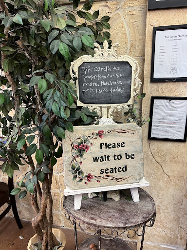 We are returning satisfied customers to the Rose Garden Tearoom and restaurant. We go here at least once a month for Sunday lunch. Parking and entrance are generally convenient. The parking lot and entrance ramp for wheelchairs needs to be resurfaced because of holes and uneven surface. Inside we are always greeted by the friendly and kind people at the entrance information and check-out center. The restaurant is cozy and comfortable. The servers always greet us with a friendly smile. The food is always great. I like the Loa salad; it has fresh fruit and mandarin oranges, pecans, and grilled chicken on fresh lettuce and greens. Quiche and soup are always a special; several choices are available over the weeks. A full entry special is always an option. Their crunchy garlic bread pieces are a great appetizer while waiting for our meals. Their Rose tea is a treat. The restroom is fully wheelchair handicapped accessible. An added bonus is the incredible selection of antiques, artwork, and "treasures" throughout the building. Several display cases show antique and costume jewelry. You will need to return several times to see it all! We are returning...
