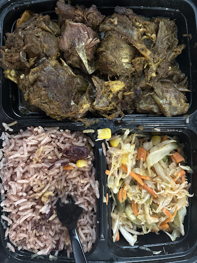 I took another bite, and there’s no denying the lack of flavor in this food. I got curry goat, rice and peas and cabbage, all of it...