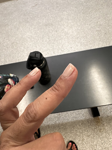 First, she was upset because I didnāt want gel nails or a manicure. I had nothing for her to āmanicureā. My cuticles were already clipped and my nails filed down to the core as I keep my nails groomed weekly. When I denied the gel nails she informed me it would ālook like trashā. Well, it sure does look like trash. Not only did she hurt me multiple times but she also got upset because I asked her to place a napkin down before forcing her hand on top on mine to put my hand down on a table that was covered in someone elseās cuticles and nail filing dust. Iām talking rolling of the eyes, a huff, and she clipped HALF of a paper towel to please my request. Not THAT big of a deal to some, but she also had very dirty nails herself and she used her nails to fix mine which I got very grossed out by it. Isnāt there tools for picking under and around nails? Not only did my nails come out different sizes and shapes but the paint wasnāt even to the cuticle line and it looks like theyāre already āgrown outā because of the gap.