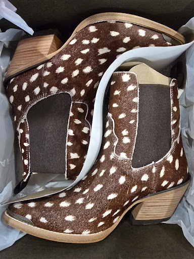 Great selection and reasonably priced western wear! I highly recommend that you swing by and give them a try. The staff were extremely friendly; not pushy, but helpful. The atmosphere was welcoming- and the contemporary country music created a euphoric mindset. I found myself embracing my inner-cowboy as I tried on a sleek pair of bass boots. I had to catch myself, before I walked towards the checkout area. I said to myself, “ what did you come in here for?” I remembered that I was only stopping in to view their inventory! I hurriedly made my way to exit; smiling to myself because I had just saved my credit card from being swiped yet again….lol! Seriously, please swing by and Bootsie’s a gander- you will not be...