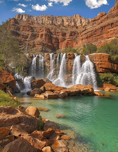 Navajo Falls located in Arizona USA, is a very beautiful fall in that desert area and has a trail near of it that allows it to be reached with ease. You wonder that this water has carved this canyon and many more through the ages. A miracle...