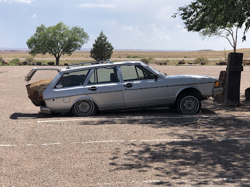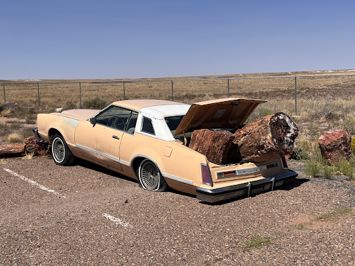 Read moreThis was a fun shop to poke around in after leaving the Petrified Forest. There are tons of things in there ranging from different types of petrified wood (claiming to be collected from legal sites not within the PF) to fossils to minerals and to even some Native American souvenirs. We felt that lots of stuff in here was overpriced, especially the petrified wood and fossils, but the minerals and Native American souvenirs were decently priced for the most part. We did buy a few small things for future Christmas gifts, and the shop owner was nice. We especially liked the goofy setup outside with the cars trying to haul off giant chunks of...