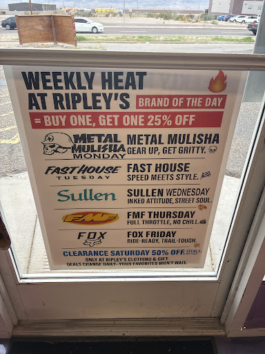 Read moreRipley's Clothing in Fort Mohave is an absolute gem for fashion enthusiasts! The store boasts an incredible selection of top-notch brands like Pro Club, Fox, Metal Mulisha, and Dickies. Whether you're looking for stylish sunglasses, swimwear, or other trendy apparel, Ripley's has got you covered. The staff deserves special recognition for their exceptional customer service. They are always eager to assist, going above and beyond to ensure a positive shopping experience. Their helpfulness and friendliness create a welcoming atmosphere that keeps customers coming back. If you're in Fort Mohave, don't miss the opportunity to explore Ripley's Clothing and discover the latest in fashion with...