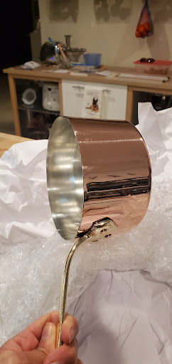 I was extremely pleased with the copper pot re-tinning service provided by Erik Undiks. My old, worn copper pots looked sadly neglected before being re-tinned, but now they look absolutely brilliant and brand new.