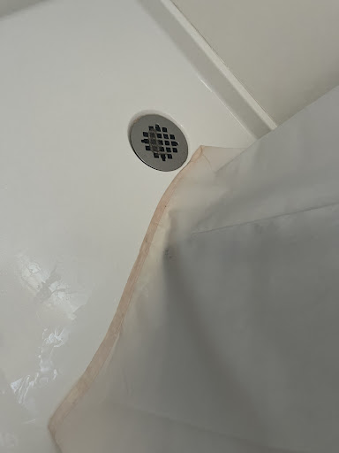 The shower liner has obviously not been cleaned in some time (see video and photo).