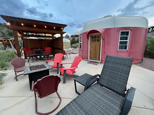 Read moreReally great riverfront property. There's not a bad spot. They have all of the yurts and airstream rv's plus the cabins which are separate from everything. Very clean and manicurd property. We stayed in the lime green riverfront yurt and it was great. Yurt were clean (a few dead bugs, cleaning crew should sweep better by beds) but I'm a harsh critic on cleanliness. The bedding was very clean/fresh and soft/comfortable! There is NO A/C in the yurts, just a heads up. It's not a tent, this is glamping and honestly have stayed in a few yurts and this was the first one without a window unit. Would be nice for them to add this to the yurts. Because of this the yurts are very hot during summer months but do cool down and are comfortable by 8/9pm. The yurts also have 2 queen beds with one being up in the ladder loft. A narrow table for supplies and another barstool table. Extra stools and 2 neat chairs. Nightstands. Several plug ins. A Keurig coffee maker. Lights. The Arkansas River that runs thru the property is beautiful! The bathrooms w/showers are good. Clean but buggy (to be expected). They do also have 2 sets of port a pottys each labeled men's/women's. Honestly the cleanest port a pottys I've ever seen!! My whole family prefered them over the actual bathroom building. They have extra seating scattered throughout the property. A big field to play games on(soccer, frisbee, etc). A big outdoor pergola with a fireplace and lots of tables/seating. A very big white tent awning that had outdoor tables/seating, fire pits, corn hole, horseshoe, etc. The 2 staff members we dealt with were awesome and so friendly/helpful! A great property and we'd definitely go back again (in cooler months). Can't wait for...