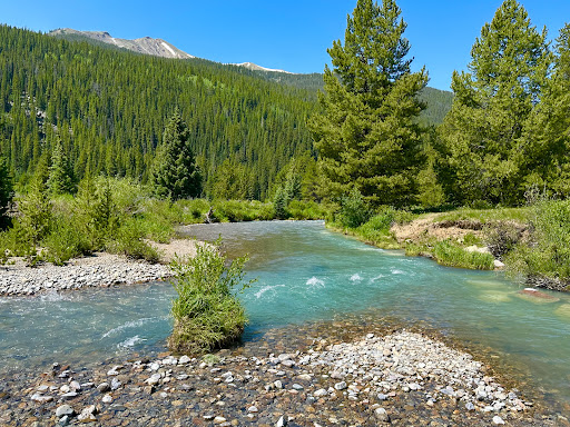 Very pretty, low river. Unfortunately, it is likely polluted by chemical mine run off due to the ashy white/blue color...