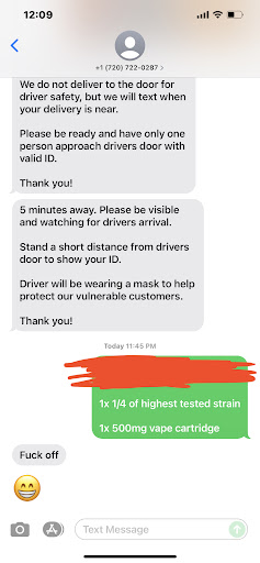 Read moreRidiculous prices and very slow responses via text. They want a $70 minimum order, plus a delivery fee, and their bud, concentrate, and edible prices are absurd! $40 for an eighth, $80(!!!) for 1g of hash oil, $50 for a vape pen that would probably cost $20 elsewhere, $50 for 200mg gummies... You've gotta be kidding me with these prices. This place is a complete ripoff.