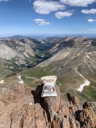Beautiful mountain! It is probably the third easiest 14er I have hiked. Although I wouldn't call any of them "easy". Uncompahgre Peak was our 47th fourteener. The views are just incredible and so many flowers even on the top. There's a short section towards the top that would make me incredibly nervous with dogs. I hate reading about dogs missing or being rescued from falls. It was unusually warm most of the hike, so extra water for the dogs if you go soon. The 4wd trailhead is a very rough road but nothing an experienced 4wd with standard jeep clearance can't do. The bolder in the road people have mentioned was not a problem for our stock four door Jeep Rubicon to squeeze by. We didn't think it was that bad but I'm not sure I would attempt a wider truck. If you have mad skills and you have a spotter to keep you from going over the edge or scraping the rock and don't have a long truck bed, it should be doable. Don't qoute me on that though. Be careful, have fun and enjoy. NOTE to future climbers: We climbed on 7/15/23 and there were blue snowshoes sitting on a rock at the field below the peak. Not sure how long they have been there and there was absolutely no need for them. Maybe someone can take them off the mountain. (My husband wouldn't let me because he thought maybe some crazy goofball brought them that day). I assume they have been sitting there for a few weeks, even though they appeared to be...