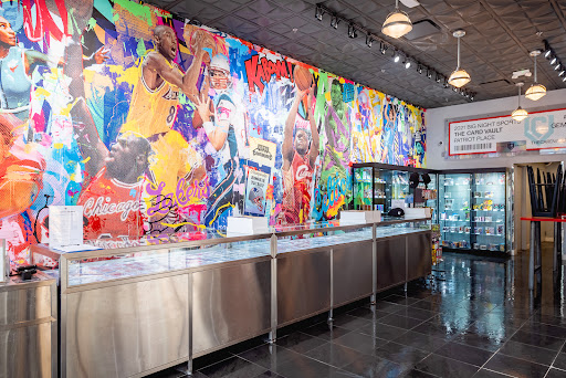 The store was aesthetically pleasing, Great displays and the vault is a cool feature. Amazing cards and memorabilia to look at. Atmosphere was cool as they do their fanatics & whatnot live streams in the front of the store, fun to watch/listen in person. For card buying though they were expensive. A majority of the boxes were $10 to $20 over retail price. Very small section for going through $5/10 cards. Only had 3 boxes and they were not organized even by sport. It was just a hodge podge of random cards not that many good hits in there. Didn't find one card I wanted. Spent more time organizing & Separating the NFL from other sports. D spent $20, but over all we were underwhelmed. Good place to look at beautiful cards/memoriablia but not for bins or kids, it has more of a "look but dont touch" feel. Also this didnt sit well with me : when we first arrived we were kinda scoffed at speaking with one of the employees. As we told him were referred to this location from a card shop owner in PA who knew the CV owner. The employee basically responded "yeah right, lots of ppl pretend to know the boss " sarcastically. Also they had a few employees but none offered to help us, or ask if there was anything we were looking for. It was kinda like we...