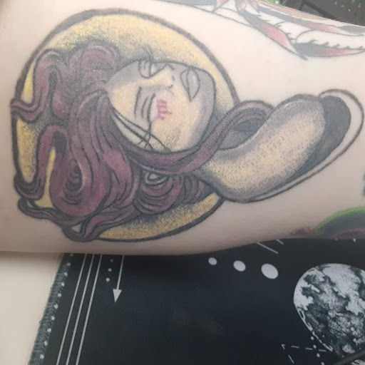 Read moreI met this artist by chance, and have loved every piece I've gotten from her since. First, the space itself is awesome. I love the interior, it's very welcoming and spacious. But Amanda's station itself is incredibly inviting. It reflects her personality and is just a chill place to be. Amanda herself is very welcoming to everyone and has a very bubbly personality, she will work with you to cater your design as you want it and really dedicates her time to making sure you're getting what you want. I've gotten two medium sized pieces from her and three flash so far, and couldn't be more thrilled with the work I received. She's been very open and honest with me about what will or won't work, placements and been amenable when I change my colors last minute. Shes been very knowledgable about various types of aftercare, and has helped when i have questions, even when they're slightly silly. And I don't know if this will be as much of a perk as I think it is, but in an environmemt most people think of as a male dominated world, she really does a great job at at creating a safe space for women and making all feel welcome. I highly recommend giving this artist a chance.