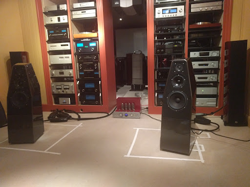 First off, don't let the outside of the building fool you. I parked in the 'back', but walked around front to the entrance. Inside, I was greeted by two floors of listening rooms (4 or 5 in total), a TON of gear and a very friendly staff. Couple of the rooms were setup for home theater, while others were dedicated to 2 channel listening. All rooms had a variety of gear. One smaller room had a number of used items on sale along with a few computer desktop audio setups.