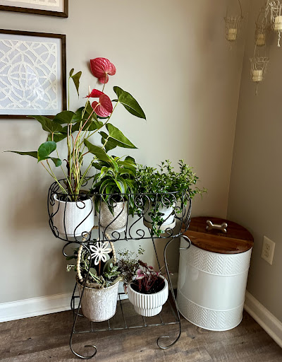 Metal vintage planter, lantern, greenery, dried flowers, āmaybe swearing will helpāš, all from...