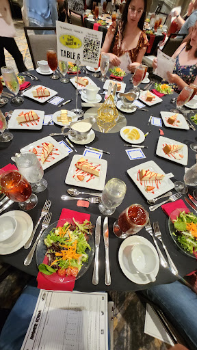 I'll start by saying we had a fun time at our show. We all laughed a lot and greatly enjoyed ourselves - the food was delicious! However, the experience was not what we expected nor hoped it to be - and maybe that's just on us, but we were disappointed. This is not an interactive murder mystery where each guest is assigned a backstory and able to participate fully in the game. This is theater - largely improv - in a hotel ballroom with audience participation. There aren't scenes or even real plots, however. The acting is mostly just two individuals having a conversation with the audience members. We did not feel like the "interrogations" of participants connected at all to the hints that were being given each round. There was one story going on in the hints that was very hard to connect to asking a confused participant random questions. The hosts encouraged us to interrogate each other to figure out who committed the murder after each round - but at least on the night we attended, no one left their seats or talked to anyone other than their tablemates. It was not very interactive in that regard - and even if there was more opportunity for it, no one had any "backstory" to use to participate. I paid extra to frame one of the guests in our group as a suspect - but all that meant was that he was asked "did you know our victim?" and teased a few times throughout the night. I had been under the impression he would have more of a role in the story. In all, did we have fun? Yes, it was a good time and a unique date night. But would we come again?...