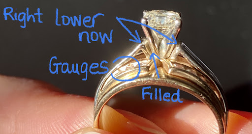 Read moreThe store is clean and tasteful and the customer service is very pleasant. Unfortunately, I have to say that I am less than satisfied with the work I had done on my wedding set. I'm actually quite heartbroken about it. I had brought in my wedding set to have the center stone setting replaced. Before this I hadn't been able to wear my wedding set for 13 years due to the original setting breaking. It had ended up taking longer than what I was originally told, but that was no big deal to me. I really just couldn't wait to be able to wear my ring again. I'll admit, that at first glance I was beyond excited, it looked fresh and shiny! But a little different, I chocked it up to the fact that I hadn't really warn it in so long. Upon further inspection when I got home...it was clear that some things must have gone wrong during the setting change. I could see that almost the entire surface of my ring had been buffed down significantly. When looking at the stones set on the sides, you can clearly see gauges. On the center part of the band, one side is now higher than the other. Where the original wedding band had been soldered on, well there was clearly some melted gold that must've been spilled into the seam because now some of it is filled in where there once was a gap. There also appears to have been an excess of melted gold on one side of the center stone setting as well. I really wanted this to work out well. Like I said previously, very friendly staff, nice store...not so great...