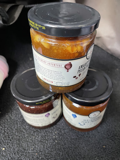 Nice place to try a lot of the samplers. The jellies and jams are amazing and tasty. Really enjoyed the many flavors. The mustards are really good too with unique combinations. One can also purchase on line. They promote some local sauces and dip. Some really good and others are ok, tasty but not unique. In general their flavors are intense from their own ingredients, they don’t try to mask the tastes with salt or sugar. Everything is unique.