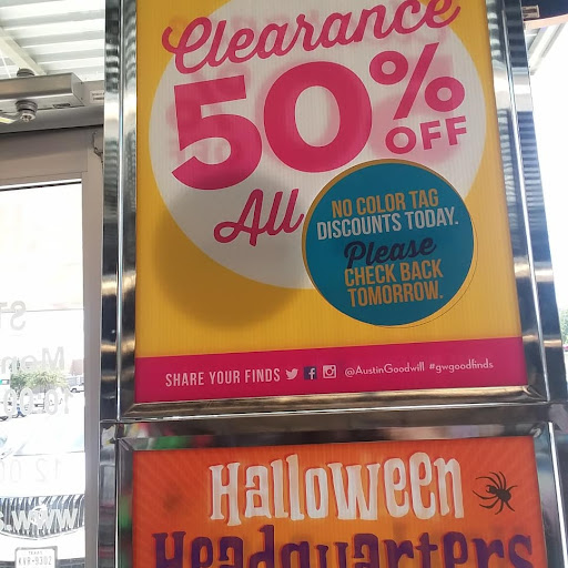 Ā Ā Ā Read moreI come here for the brands and organization. They are overpriced though, even for Goodwills. They are a part of central Yexas Goodwill, so associated with Austin rather than SA. This is why their prices are higher. They also at times post misleading signs and don't honor them. I spend a lot of money here, and use to recommend to everyone so I feel they should have honored the sign put up. The sign is interpreted as 50% off all items, but no sales tags, to everyone I have asked. Since this I have diversified where I shop and find the same brands for less at other local stores. On this day we spent about 200. We would have bought more but it was not honored. I used to work in retail and the custom is to honor discounts when a sign is left up or misposted.