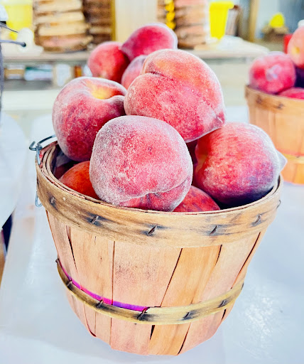 There are many options when it comes to fruit and vegetable stands in Fredericksburg and they also have a farmers market every Thursday afternoon. We stopped at Studebakers's Farm Stand for a couple reasons. First it wasn't a large brick and mortar and second the focus was peaches ! It is a medium size building-a barn type structure with multiple wooden fruit stands inside. The peaches are beautifully displayed in baskets of varying sizes, the size determines the price. The young lady who assisted me was very nice and helpful too! (Despite the fact that it was 103' outside-the structure provided shade but it was still quite hot!-my temperament changes a bit when I have to be out in that oppressive heat!)
