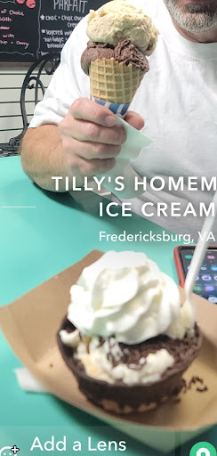 Read moreTilly's is small inside, but bursting with incredible flavors. Their handmade ice cream is thick and rich, and agreeably chunky for those flavors that include extras. They scoop generously, so while the price is definitely more than an average ice cream shop, you will know exactly where your money went and you'll be satisfied when you finish! I have quite an appetite for ice cream but I can't finish a double scoop cone by myself. If you're not into cones they also offer cups in both edible and non-edible formats -- and all edible formats have chocolate dipped options! Tilly's banana pudding is LEGENDARY and so many of the others are great too, like mint chocolate chip, raspberry chip, and of course rocky road. You simply can't go wrong here. I'm going to miss Tilly's when they shutter temporarily...