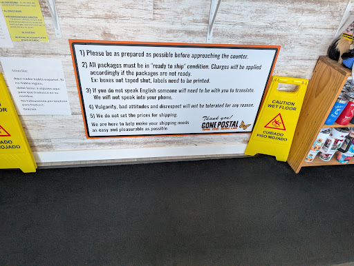 The WORST CUSTOMER SERVICE experience I had in town!!! It was my second time in Gone Postal. The first time I went I was so pleased with how I got the help I need. Of course it was with a different person. The bad experience was with a different lady. She might be the manager or the owner but whoever she was I find her not fit for the business she is in. Does not know how to smile and approach people with courtesy or just doesn’t understand what customer service is all about. When we arrived in the shop there were two doors. The closest door where we’re at was propped open and there were two people (lady and ups guy) chatting. We can see from outside the merchandise and the counter where we need to transact so we thought that can be an entry way going in. There was never any clue that the door was for a different use. By the time we stepped in we were told to go out because that was just a delivery door. I felt unhappy with the tone and the manner we were advised to go out. If only that was for delivery they could have closed it right away for people not to assume that could be another way to go in. Besides, when people mistakenly go in tell them nicely not in an arrogant way. Then, when we inquired about the service we need from them she was also different. She may be the owner but she still needs customers to operate. Each and every customer that steps in the shop regardless of whether they are rich or poor is a blessing and should be valued because they bring revenue. I will never step in the premises of Gone Postal. Very...