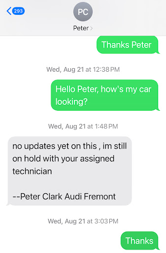 Read moreThank You Kimberlee for your response. I do appreciate that you are taking the time to respond to the customer's feedback. Just wanted to provide an update of my situation since my previous review... BTW, my name is Jonathan Wong. Hopefully you will be able to locate me in the profile. So, I did finally get a response a few weeks back from the Finance Manager regarding my inquiry for my refund request. I was told that the employee who originally filled out the request used an incorrect form (even though the copy of the form that I retained clearly stated the request to cancel and refund the service package that I have bought). And I was also told that this employee who filled out the incorrect form is no longer working for Audi Fremont. So the Finance Manager helped me re-submitted the request with the correct form this time. However, I was told by the Finance Manager that given how long this has been since the original request, he felt doubtful that this request would be accepted. After hearing that, I cannot help but feel disappointed and frustrated to even imagine that an Audi employee who filled out an incorrect form and left the customer waiting for 6+ months, and is eventually going to prevent the customer from getting the request for a cancellation and refund. This just sounds like a very questionable business practice. But once again, I will continue to wait patiently and see what the outcome would be.