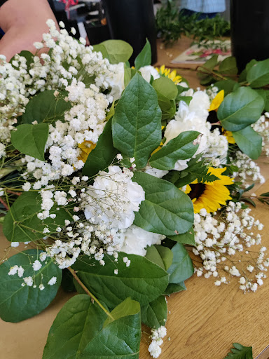 Scott helped me create a huuge bouquet of white carnations, baby's breath, and a few sunflowers. We added some greenery to make it pop and it came out so beautiful and bountiful which is exactly what the couple wanted.