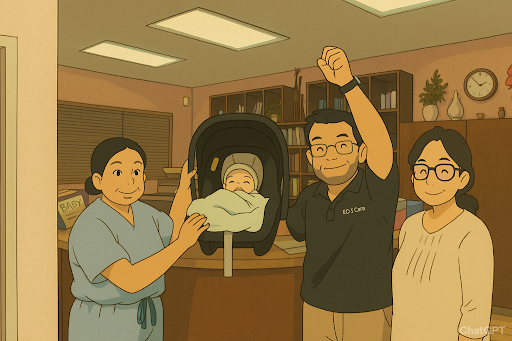 When she’s on the job (for example the actual labor), she enters a focused, no-nonsense zone, completely undeterred and disconnected from the noise around her. She handles even the most intense situations with calm confidence, never showing signs of stress or worry that could make patients anxious. It's only afterward that you realize how much she was managing behind the scenes.