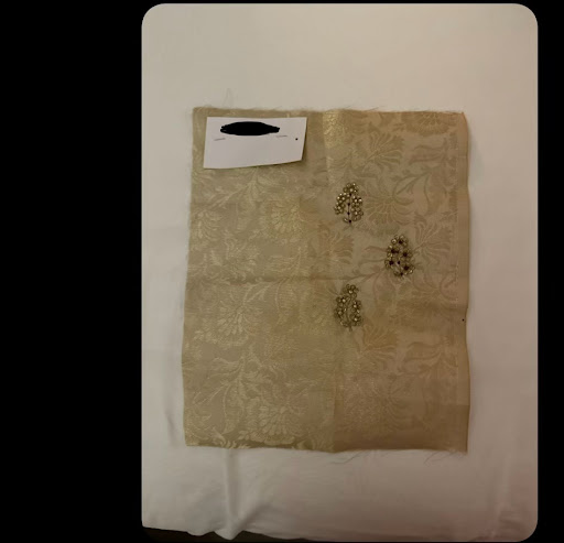Tanmay and Saurabh were told at time of purchase (August 2023) that my fiance would be traveling to India in November 2023 to do the rest of our wedding shopping (matching jewelry to wedding outfits, events etc). Swatches were not produced prior to the trip, causing severe issues, complications, stress and delays to the shopping process. Upon arrival to India, a swatch was provided to my fiance (shown below). The swatch was, at best, a terrible joke. Panels showing the correct colors, designs, embroidery were not provided.