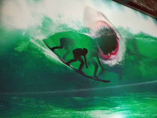 Funny story, my daughter loves sharks and I got her a pic for her Apt that u can't find other places. It's unique like me, and it was 7 bucks how could I go wrong? You can't even go to most fast food joints for 7 bucks now a days! Lol. Ok, to understand the pics it's one of those movement pics so I did the best I could, but the surfer is trying to avoid getting eaten by a...