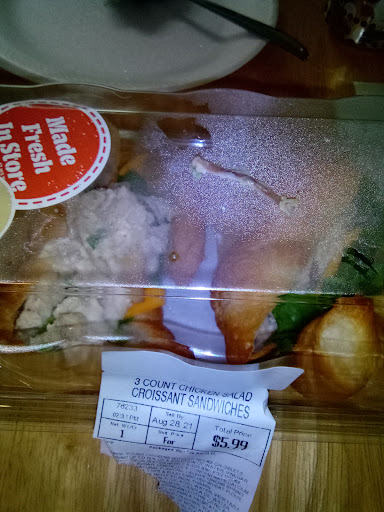 Next one big problem... 2#--Item purchased Chicken Salad Croissant sandwiches 3 in a package. $5.99. Says "Made in Store". Two things 1) A 1 1/2 " inch bone in first bite. Very dangerous. 2) Chicken was in chunks, not diced.
