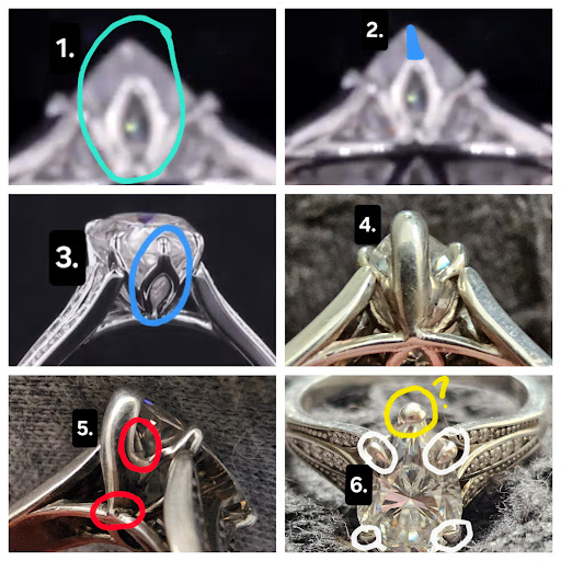 Circled in blue is how my white gold ring tip looks—exactly what I asked for.