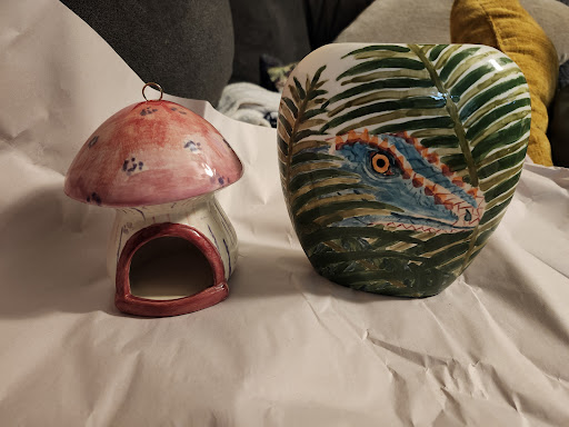 While the clay blanks can be pricey, it"s honestly worth it if you don't have the materials at home to do this. I also opt for cheaper, plain options and add detail on top of them: I would have loved the abstract t-rex figurine but not for $57 when I could pay $26 for the plain vase and paint a dinosaur on there. We love the mushroom bird feeder though and were happy it came with a metal hanger added after firing and glazing. They always package each piece with care and the notes made...