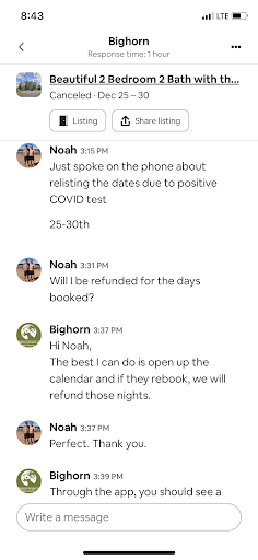 Read moreAwful experience because of the employee named John. John made an AirBnB listing for a seemingly nice home in Frisco, so I proceeded to book it. But, as it turns out, the house listed as an "entire house" actually had the owners staying in the downstairs, even though we were paying over $800 a night. I proceeded to ask him if the owners would be there that weekend and if I could cancel. He ignored my questions and simply told me that I needed to be 25 to rent the place even though I would be 24 years and 50 weeks old at the time. So, I asked him again whether they would be there and whether I would be able to check in (all of my guests are 25 to 30 years old), and whether I would be able to cancel. Yet again he ignored my questions and told me I could cancel for free within the first 24 hours. So, I went to cancel at hour 18, but I was only going to receive $385 back out of $2,518. I told him this and asked my previous questions again. He took 3 days to respond, even though he has to respond to the guests within an hour. When he finally responded, he completely ignored my questions and statements and simply said he wouldn't be cancelling the reservation, I would need to. I had to call airBnB to have them resolve the issue. They told me he isn't allowed to discriminate by age unless under 21 and that his ad was deceptive and had misleading information. AirBnB then issued me a refund as his expense. I am just glad I didn't have to go through my credit card company. There's no reason that after breaking AirBnB's rules and creating a misleading listing that he should've felt the need to lie to me, ignore my questions, and continuously tell me to cancel the reservation and thus lose $2,376. His only job is to write accurate listings and provide customer service, two very simple tasks for anyone with even a...