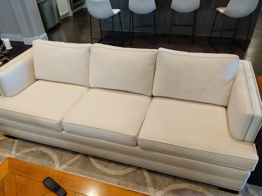 The most important thing for us was that the sofa was very comfortable for lounging around, watching TV. Not that style and color didn't play a large role but that was second to comfort. We had a perfectly good style and color sofa but it just wasn't comfortable. We shopped all over the place and after trying the sofa at Ethan Allen (EA) several times we decided it was perfect. We liked the way the floor model felt but we also tried EAs "tester cushions". Karen came out to our home with several fabric samples and found the perfect color in our room. We had to order the sofa, which actually took less time than expected to be delivered, YAY (5 stars)! However, here is where the 2 stars come in, when we sat on the sofa and it felt like we were sitting on a pretty HARD surface. After about a week we decided to take our cushions into EA and see if the floor model had the same cushions. To our surprise when we put our cushions on the floor model they were VERY comfortable. We went back home and sat on the new sofa and we HATE the way it sits. I can only guess that the decking part of the frame is made differently than the floor model because the cushions are the same. Of course since it is a custom order sofa there is NOTHING we can do about it. We now have another VERY uncomfortable sofa to sit in for the next 10+ years. I wishing we would have just lived with what we had or spent few thousand less. Oh, I forgot to mention they didn't do a very good job with the nailheads.